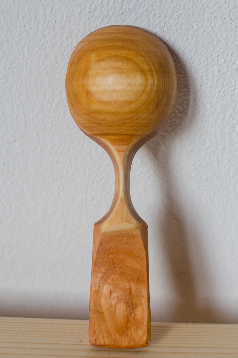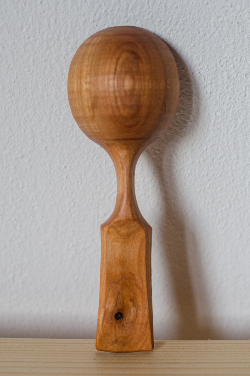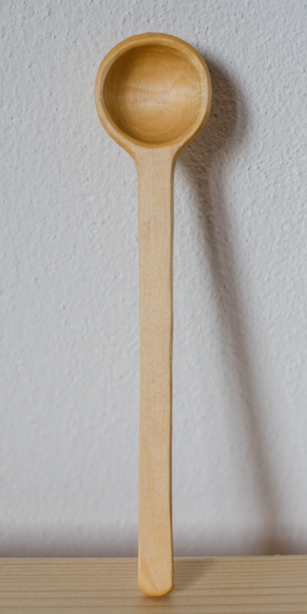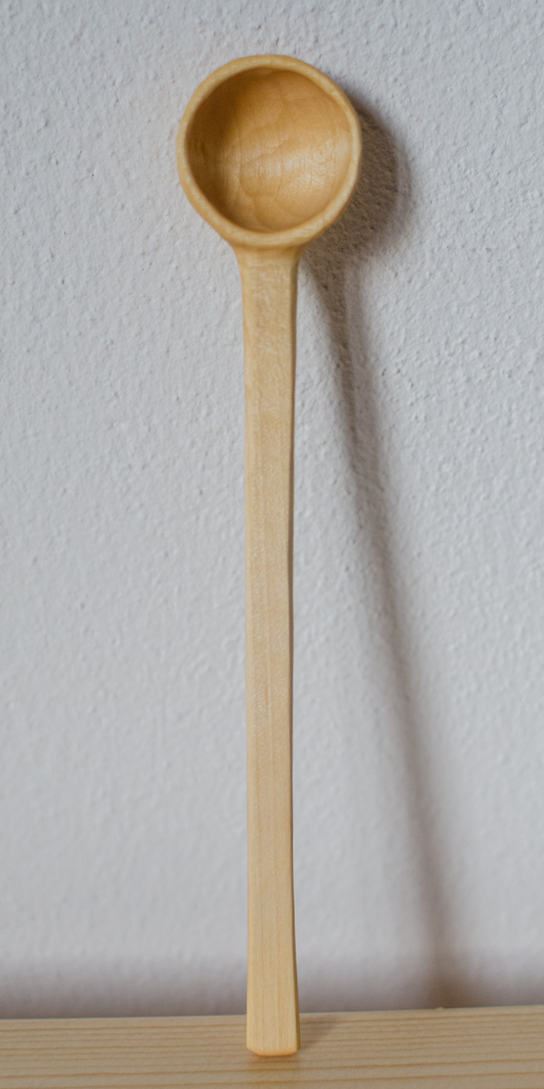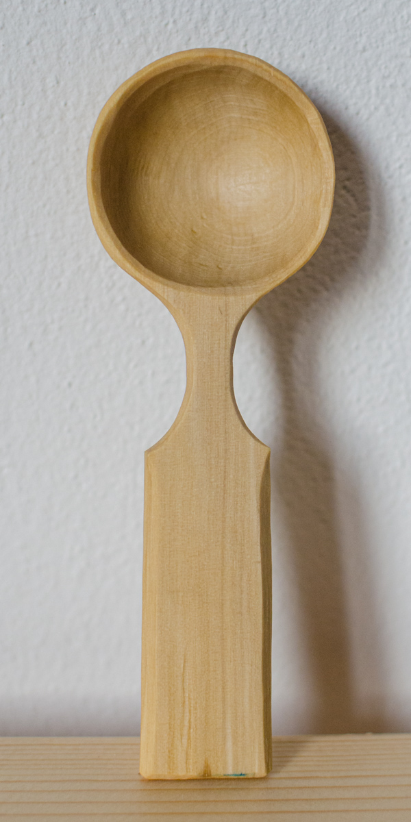 So angegeben ist die Aussenseite der Laffe (Kelle) an der Wippdrehbank gedrechselt, ansonsten nur mit Messer und Löffelschnitzeisen bearbeitet. Länge zwischen 11 und 16 Zentimetern.