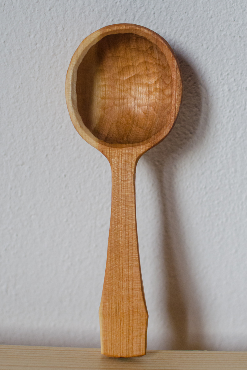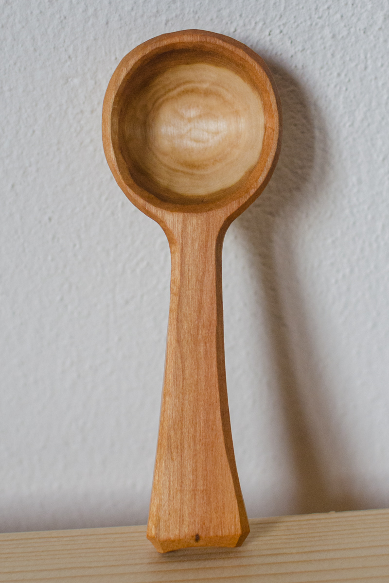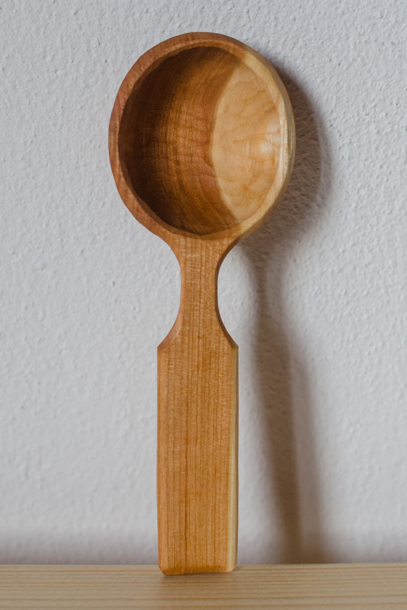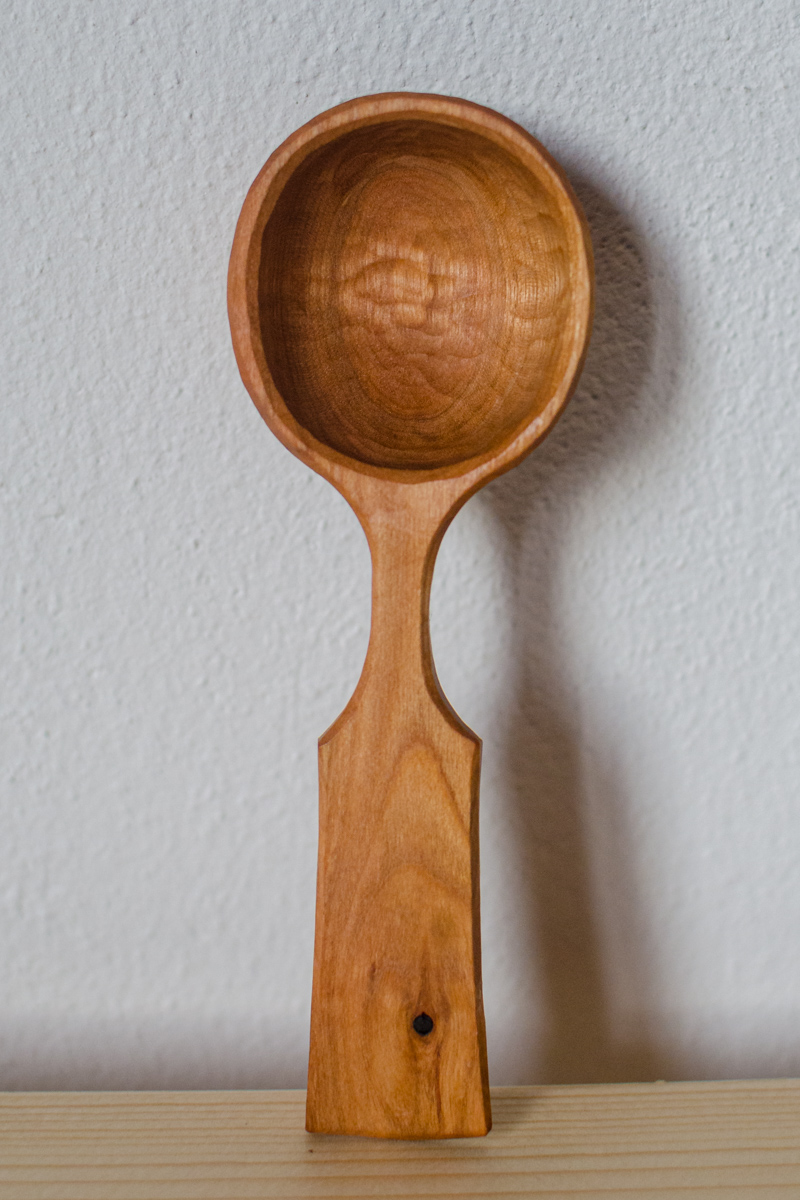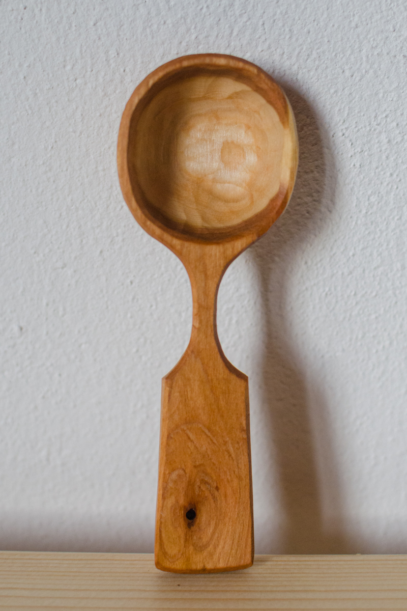 So angegeben ist die Aussenseite der Laffe (Kelle) an der Wippdrehbank gedrechselt, ansonsten nur mit Messer und Löffelschnitzeisen bearbeitet. Länge zwischen 11 und 16 Zentimetern.
