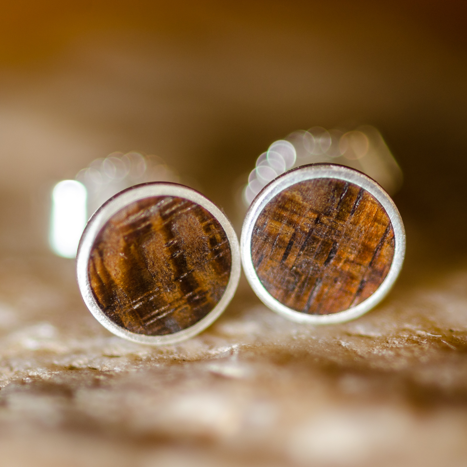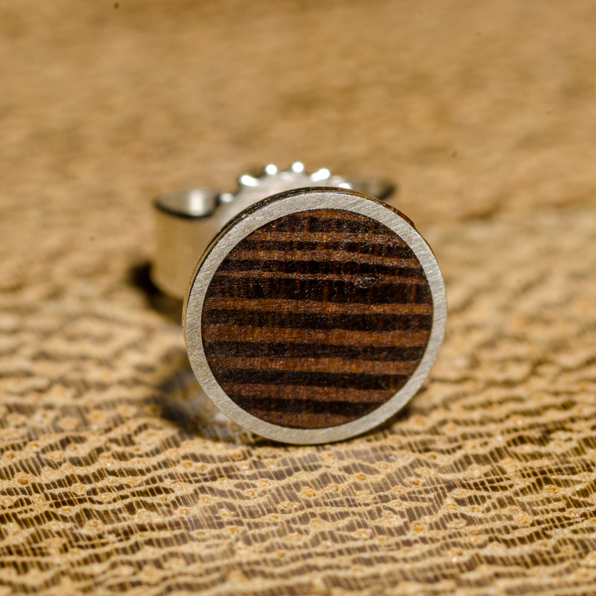 925 Sterling Silber, 6mm Echtholz-Inlay
