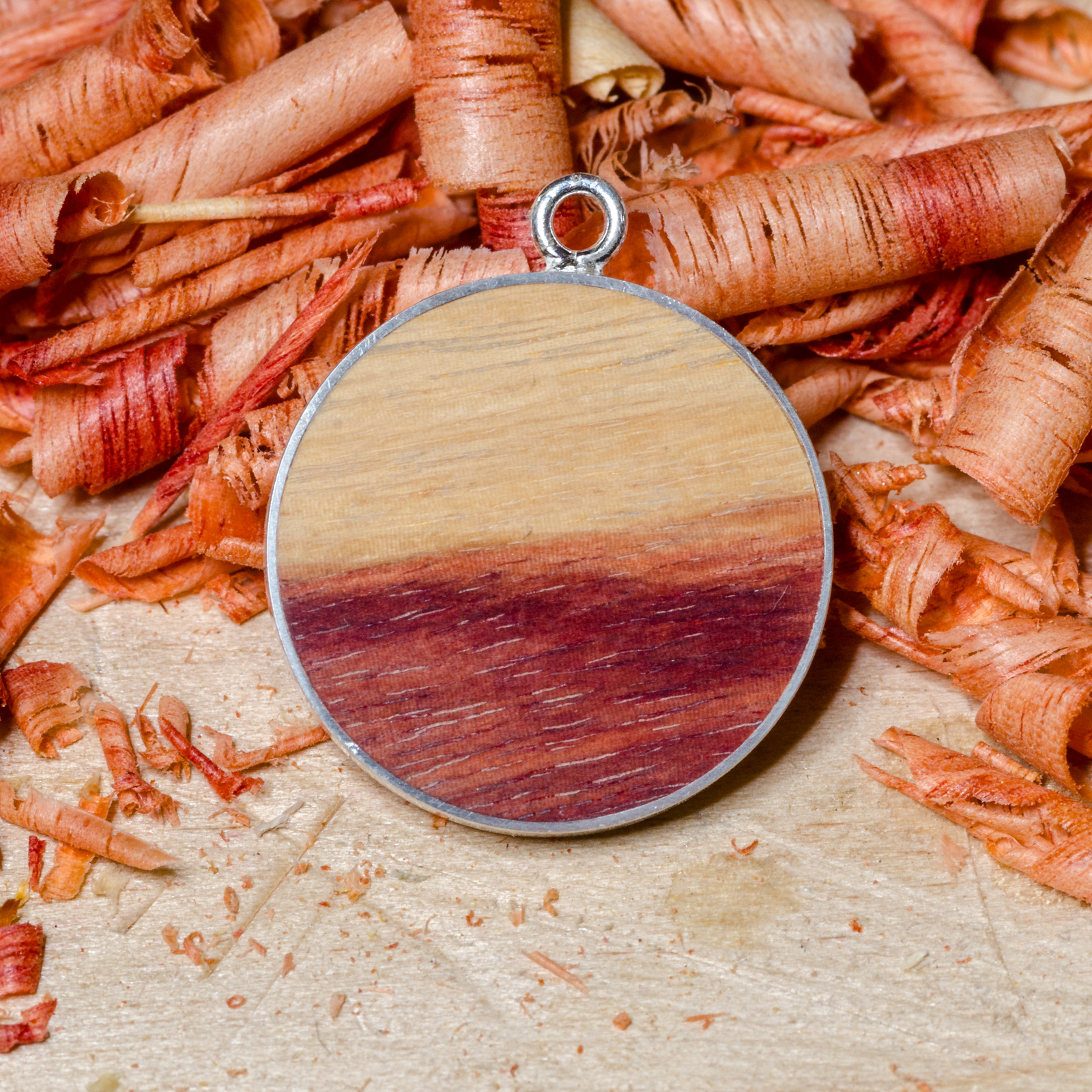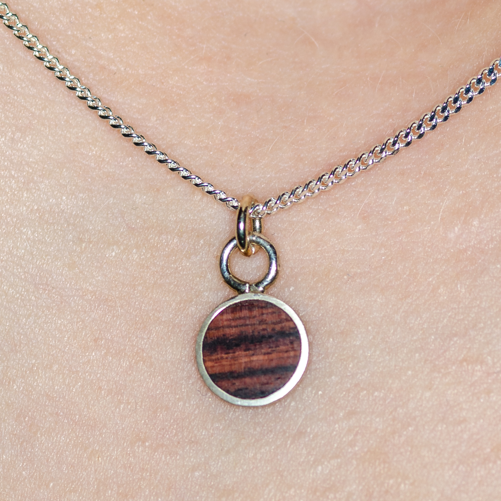 925 Sterling Silber, 6-25mm Echtholz-Inlay (mit Verbindungsring; Kette auf Anfrage erhältlich).